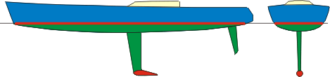 Kil będący w latach 90 obowiązującym dla racerów. Balast w postaci bulby na wąskiej płetwie balastowej. Współczesne 20m jachty regatowe osiągają prędkości 30w i płetwa może być bardzo wąska. Praktycznie wszystkie współczesne oceaniczne jachty regatowe mają zbliżony kształt podwodzia. |