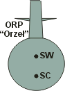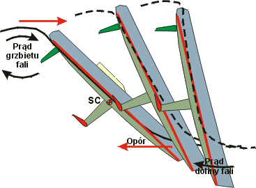 - ciężar jachtu C przyłożony w środku ciężkości SC