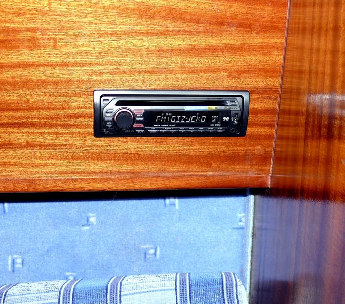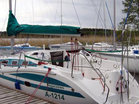 - Wyposażony w echosondę z GPS-em i koło sterowe, światła nawigacyjne, Lazy Jack, Rolfok i oczywiście patent do kładzenia masztu.